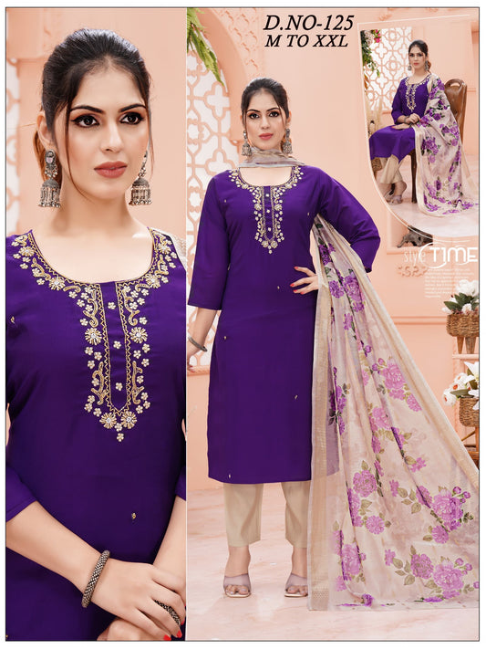 Cotton blend 3 pcs office kurta set