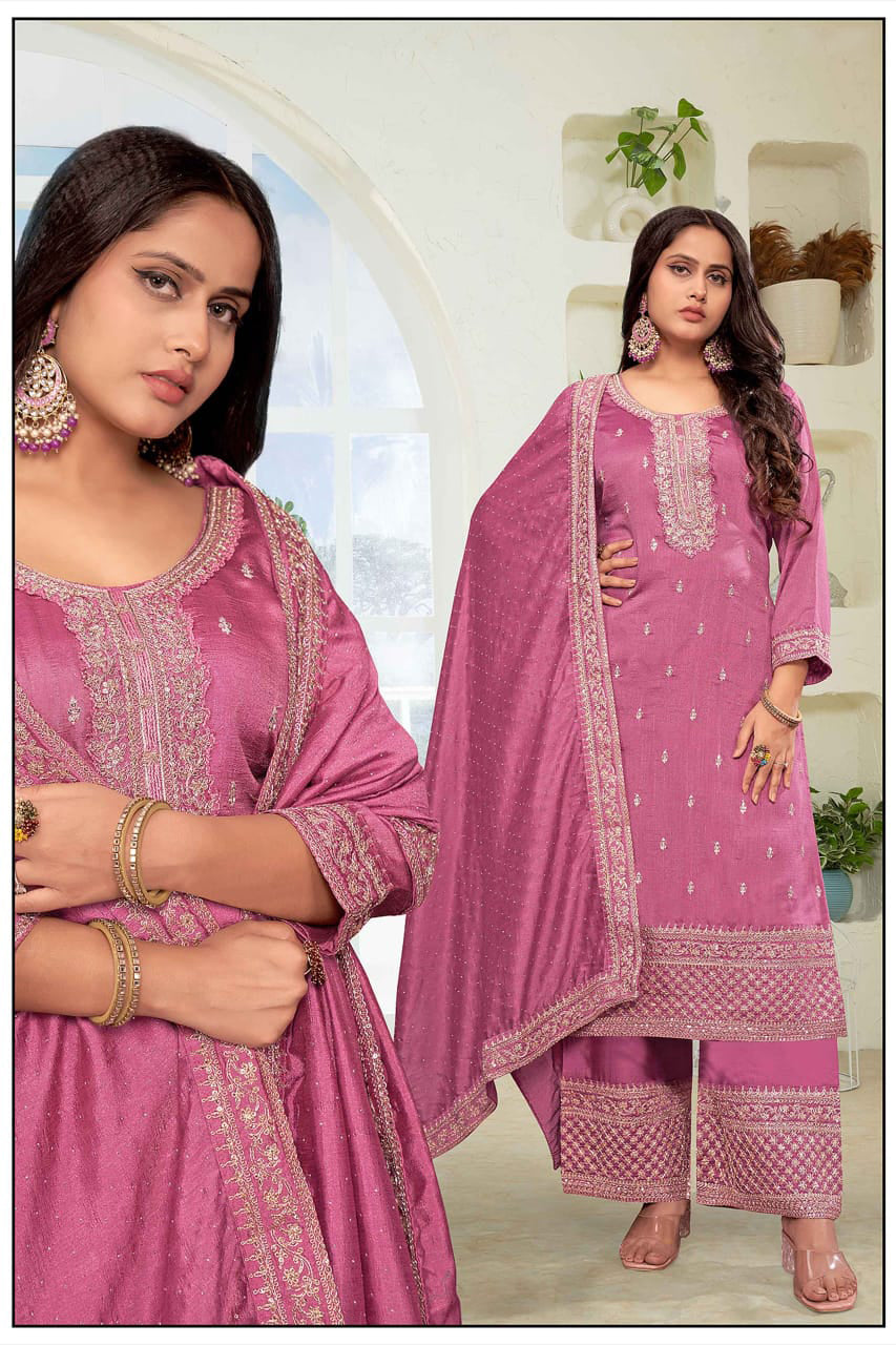 Beautiful Party Wear Vichitra Silk Kurta Sets with embroidery work.