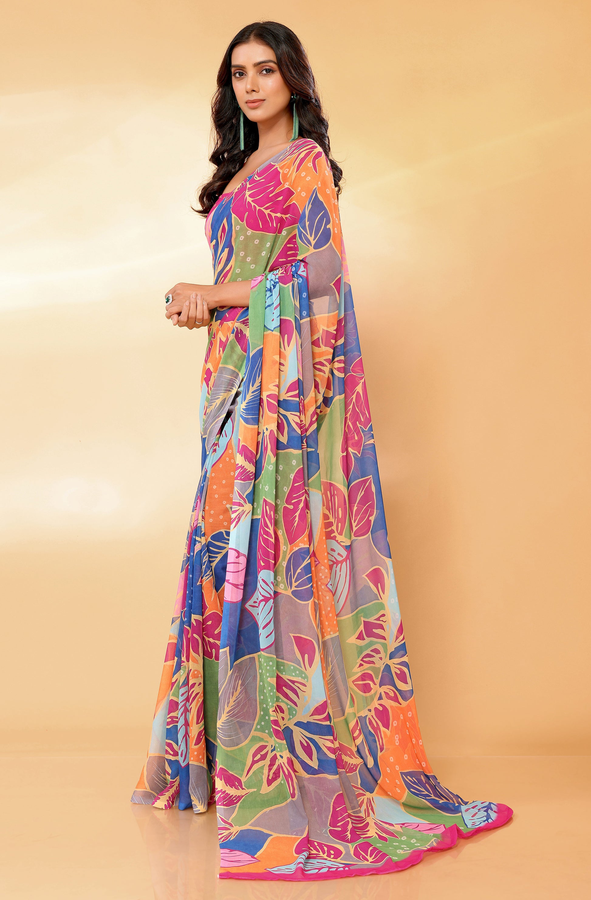 Premium Office and College wear printed Georgette saree with unstitched blouse.